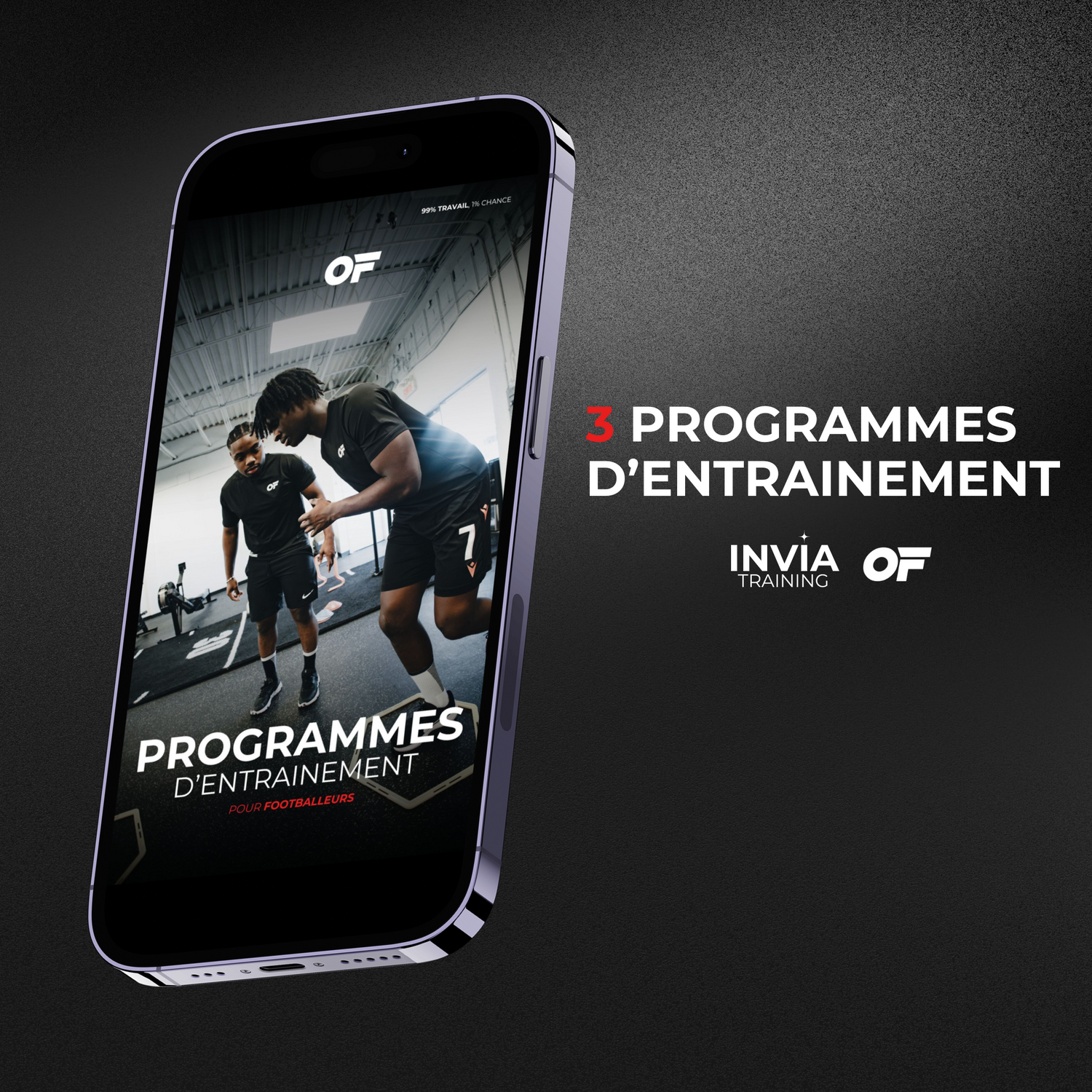 En commandant chez Objectif Footballeur, vous recevrez gratuitement vos programmes d'entraînement. C'est un cadeau, et c'est notre philosophie : 99% Travail, 1% chance.